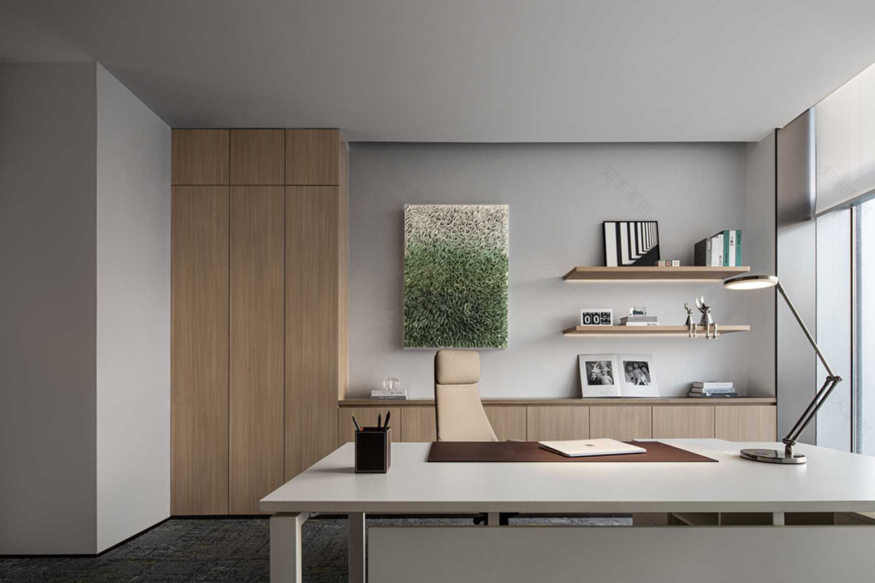 - 總裁辦公室:實木護墻板+智能霧化玻璃(2000元/㎡起)